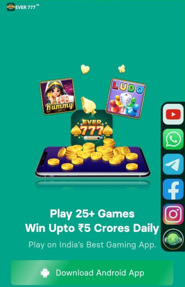 Download Ever 777 App and instant get big bonus Rs.166 .Click on the download button ✅.