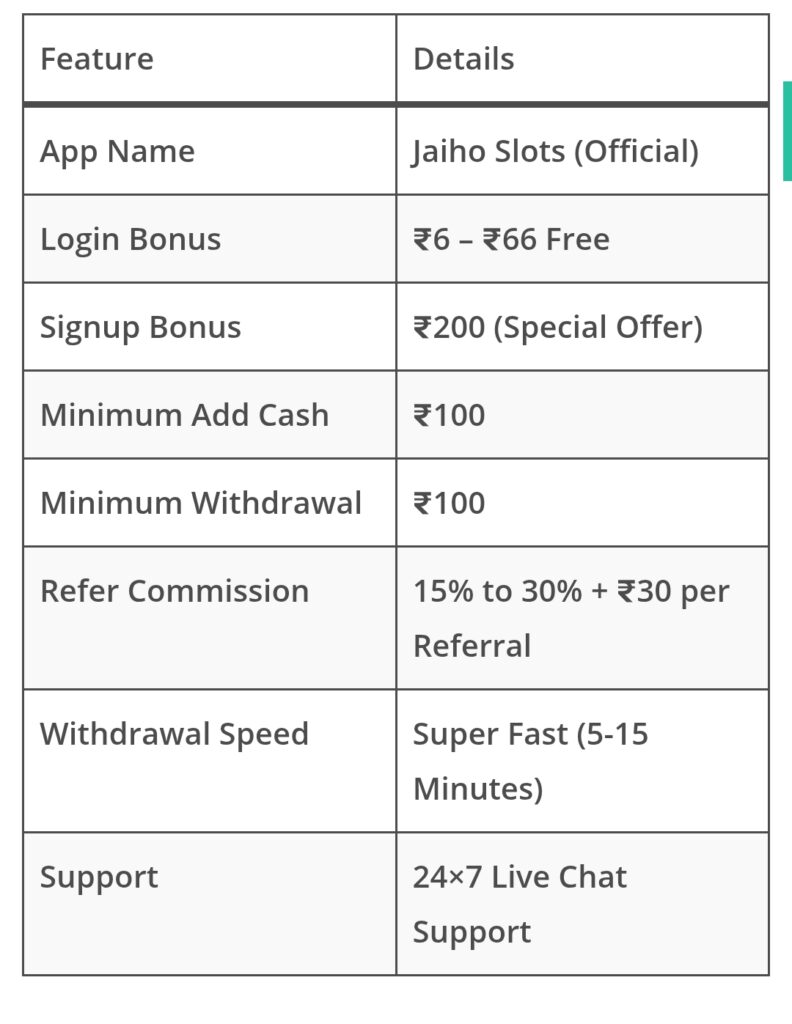 📊 Jaiho Slots Apk Overview (2026 Latest Version)